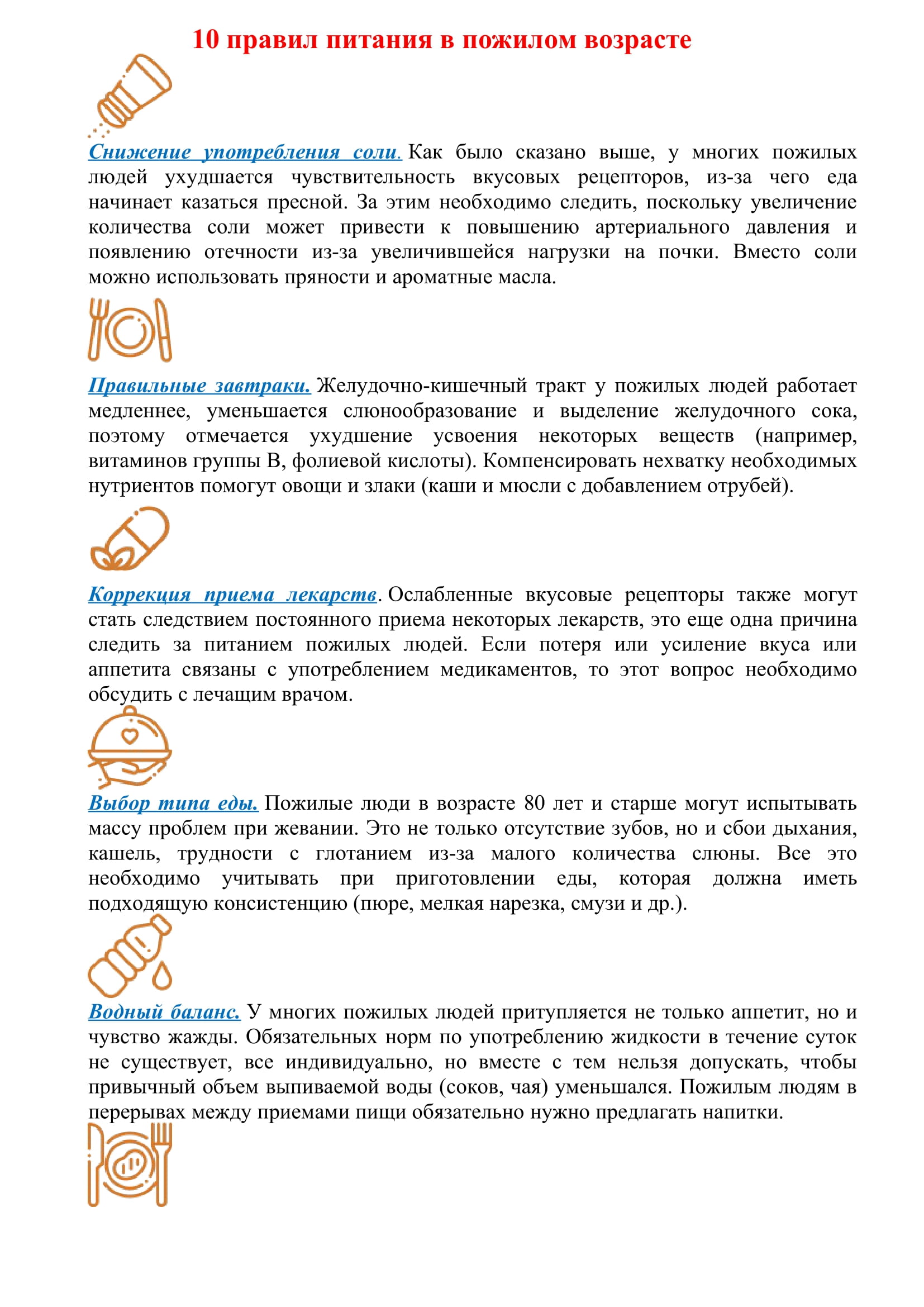 Основные принципы питания пожилых людей