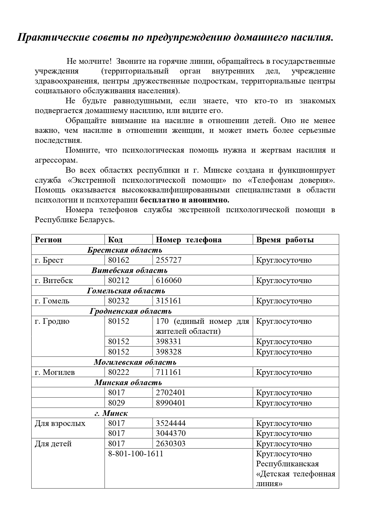Телефоны доверия