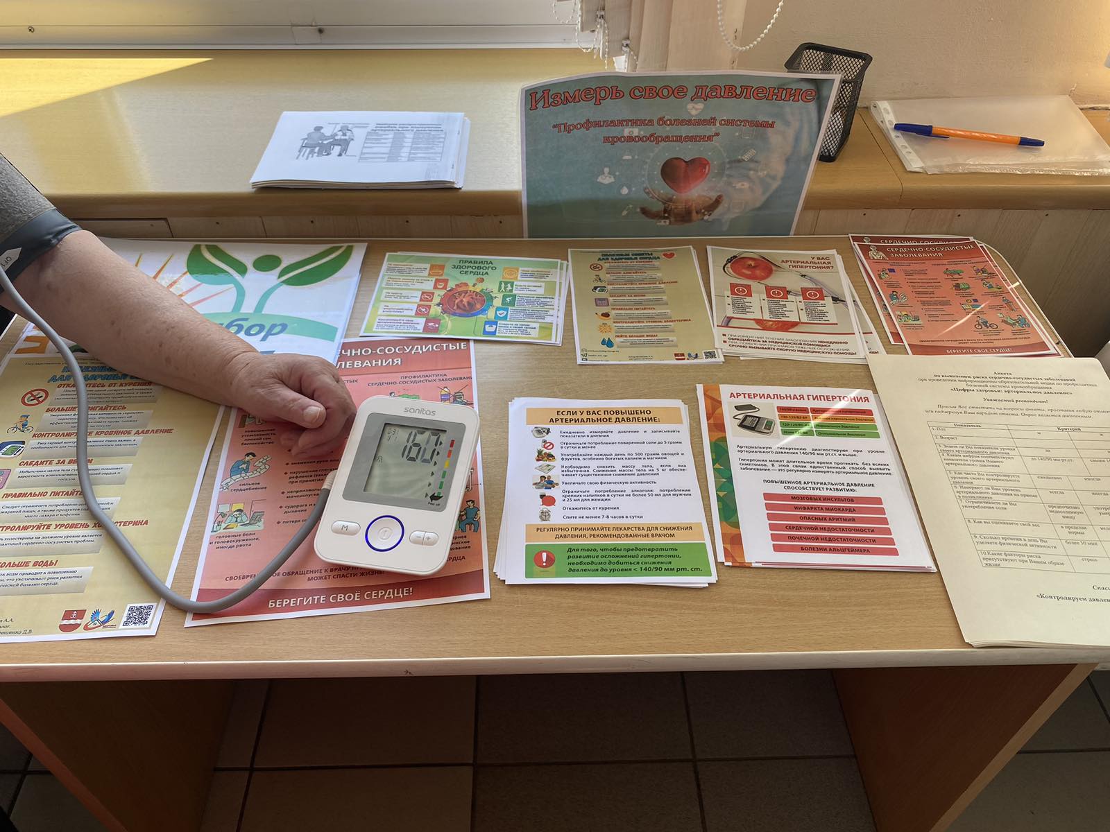 Во время проведения акции каждый мог измерить артериальное давление, пройти анкетирование, получить консультацию и информационно-образовательный материал на тему профилактики БСК и правильности проведения измерения АД.