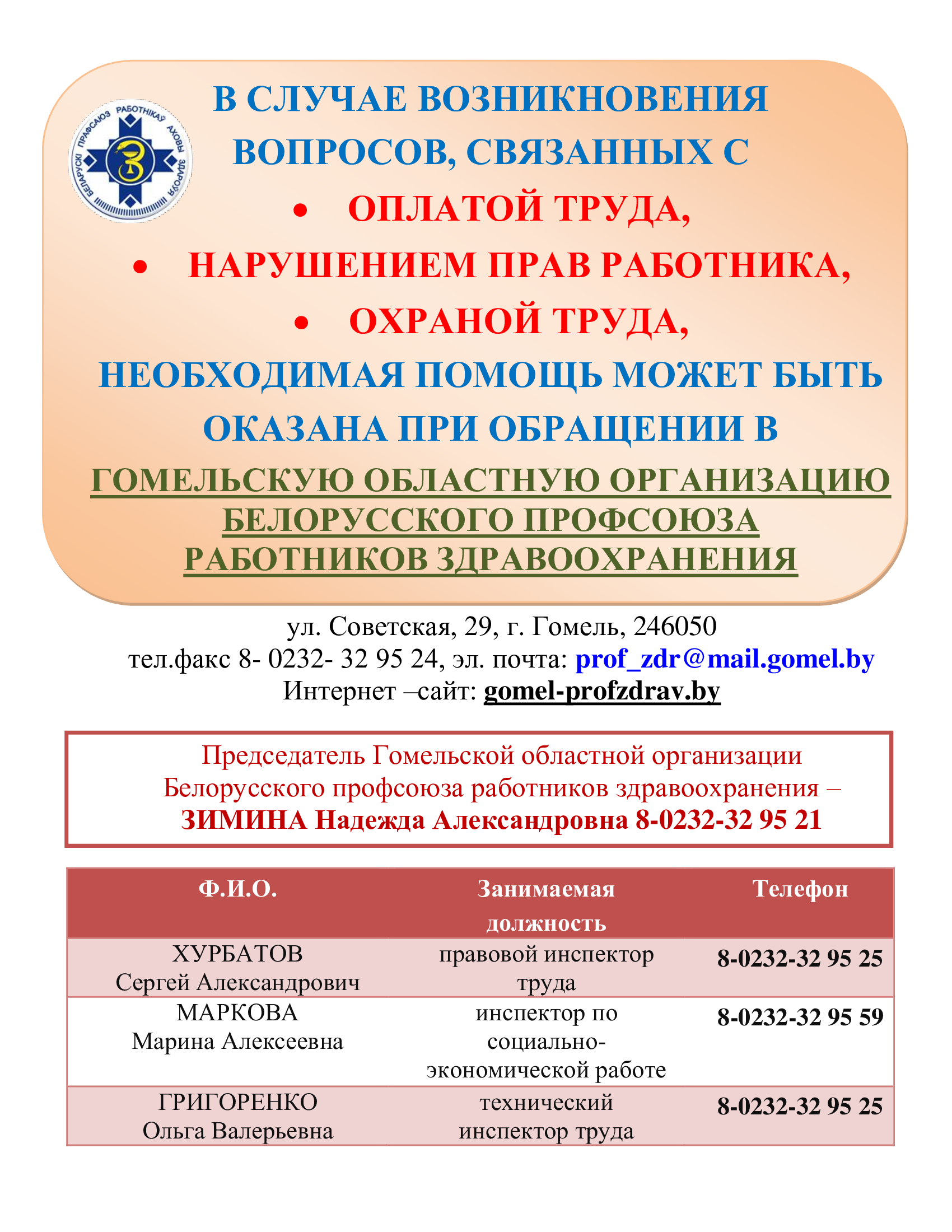 В соответствии с Уставом, решениями VI съезда Профсоюза, Программой деятельности Белорусского профсоюза работников здравоохранения на 2015-2020 гг., профсоюз направляет свою работу на: