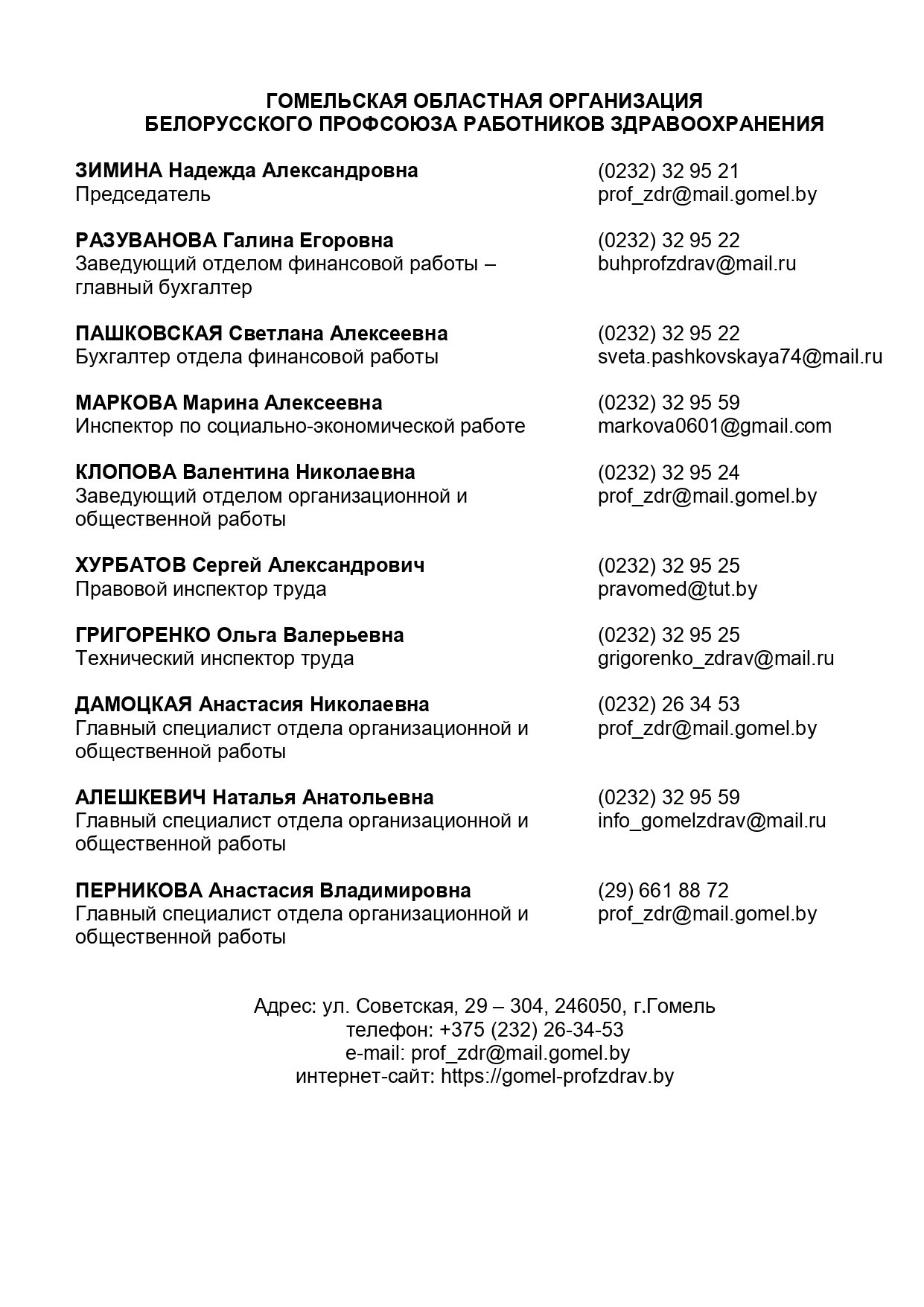 Профсоюзная организация УЗ «Житковичская ЦРБ» принимает участие в анализе экономических и социальных ситуаций в организации здравоохранения, прогнозирует последствия принимаемых администрацией решений, вырабатывает меры по преодолению их негативных последствий, определяет политику по защите трудовых и социально-экономических прав и интересов членов профсоюза.